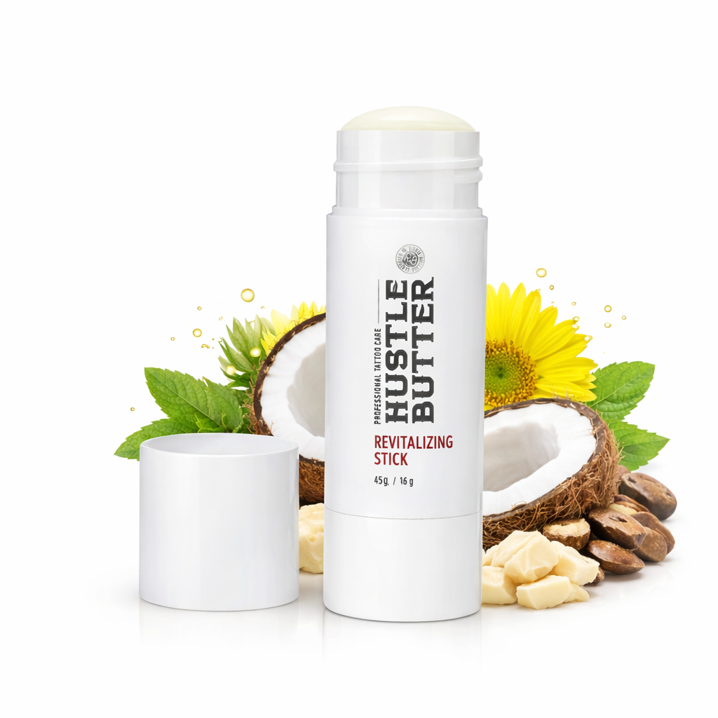 Hustle Butter Revitalizing Stick 45 g este un balsam profesional conceput pentru hidratarea și revitalizarea tatuajelor vindecate. Formula sa bogată în unturi și uleiuri nutritive ajută la menținerea pielii hidratate și la evidențierea culorilor tatuajelor, oferind în același timp o senzație plăcută și confortabilă pe piele.