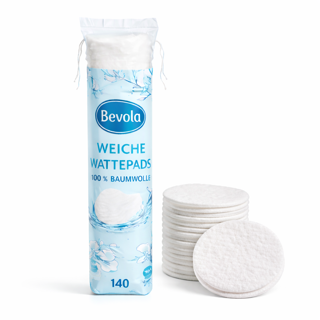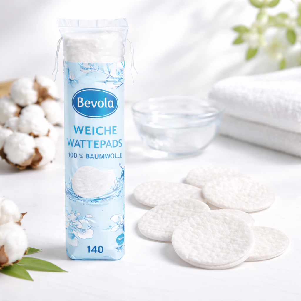 Dischetele demachiante Bevola Weiche Wattepads sunt fabricate din bumbac 100% natural, oferind o soluție sigură și delicată pentru curățarea pielii.