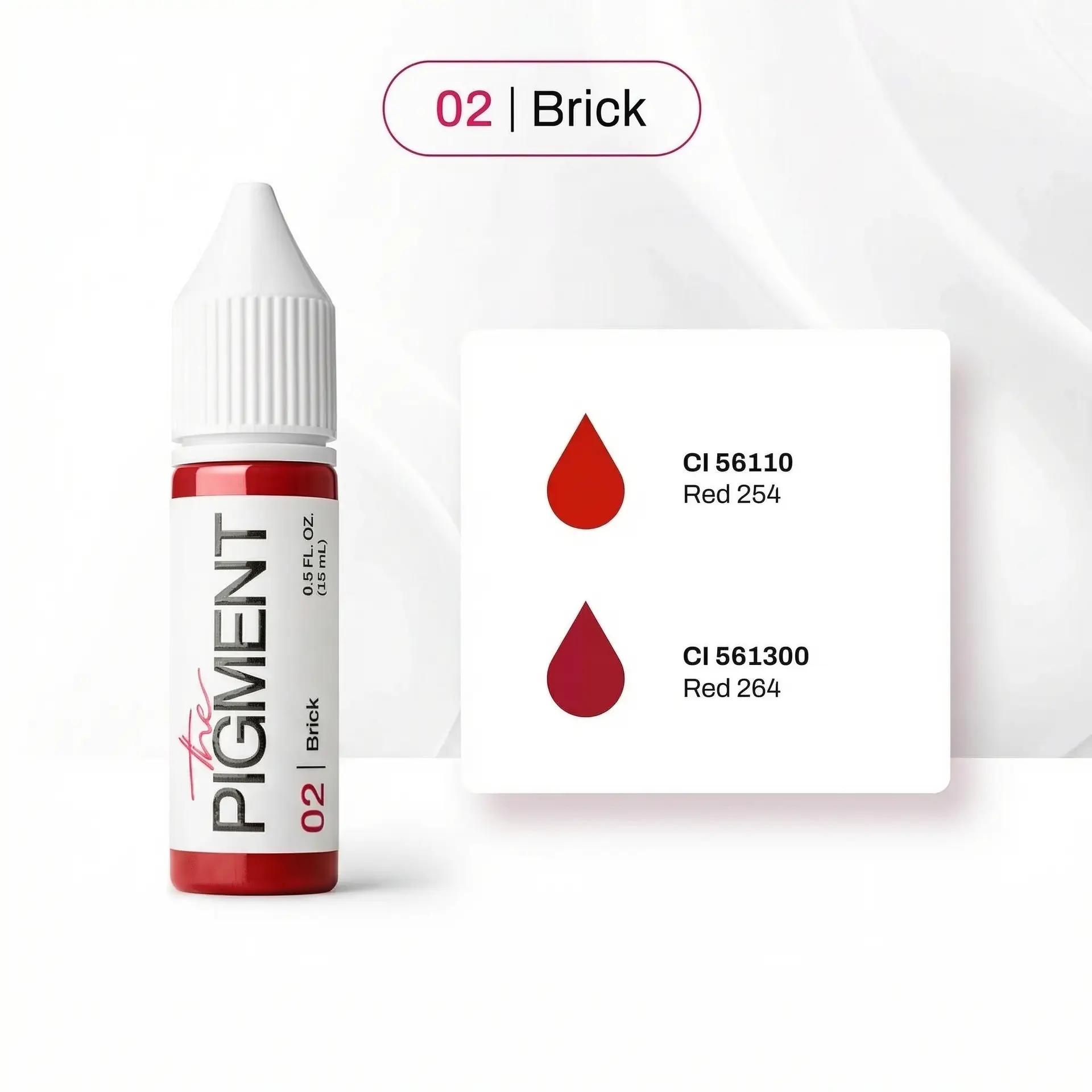 The Pigment 02 Brick este o nuanță roșu-cărămiziu cu subton cald, ușor teracotă, concepută pentru artiști PMU care doresc control cromatic și stabilitate după vindecare.