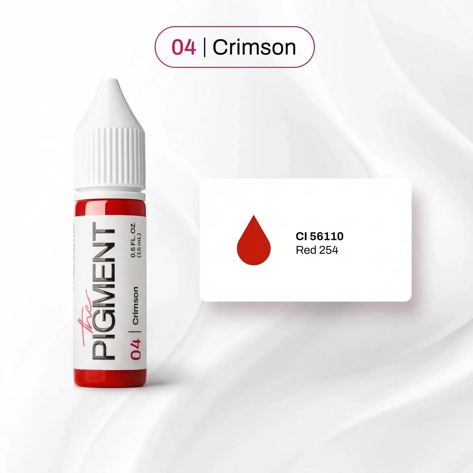 The Pigment 04 Crimson este o nuanță roșu vișiniu cu subton ușor rece, concepută pentru artiști PMU care doresc o culoare intensă, matură și rafinată.